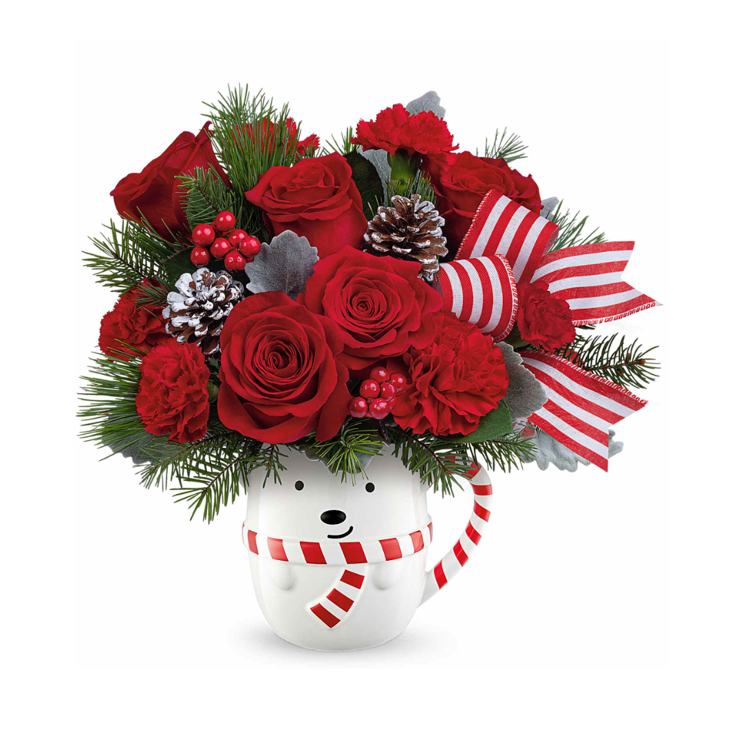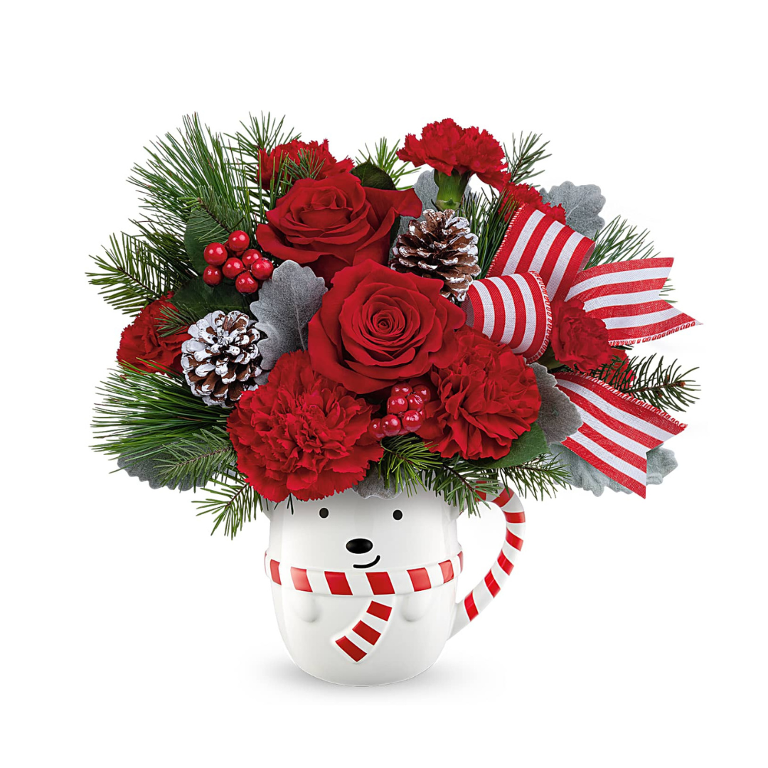 Arranged in Teleflora's adorable bear mug, it's the perfect way to send warm wishes and smiles this Christmas.