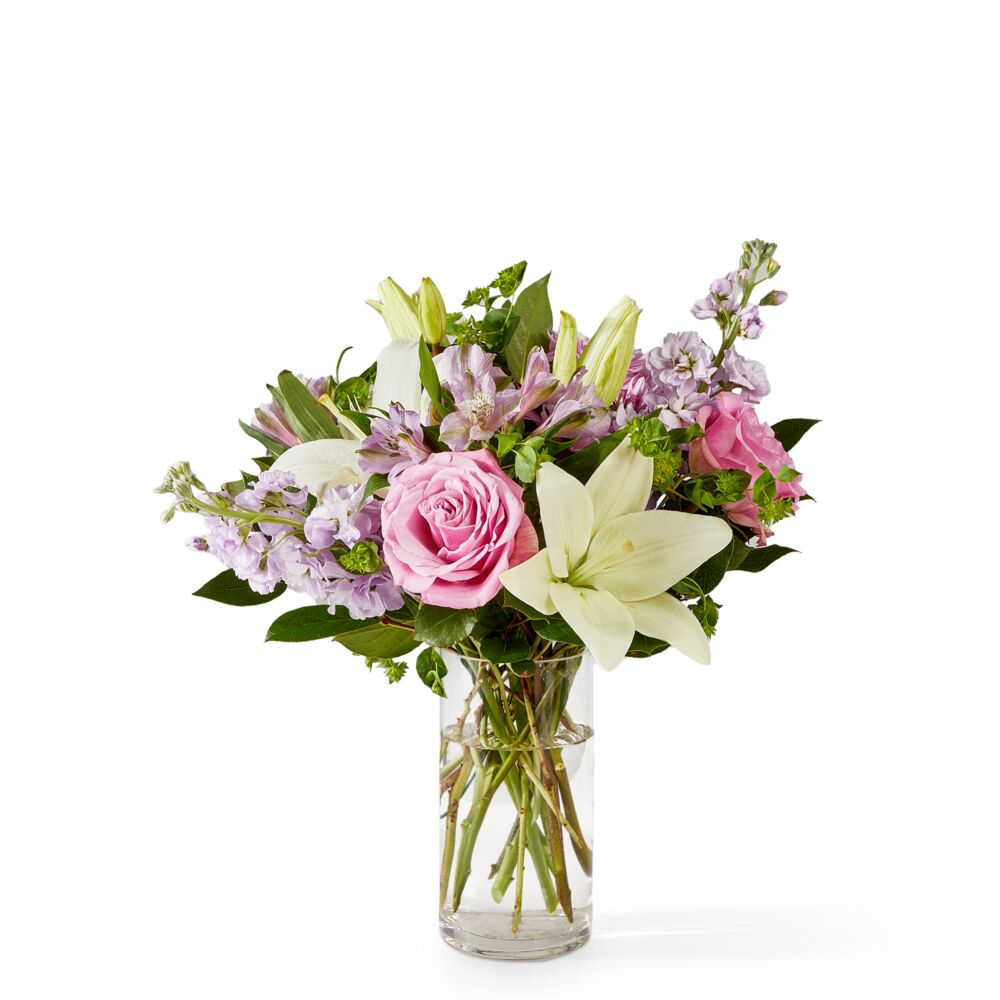 Lush lavender and ivory florals emit a sense of serenity, creating an alluring and lovely gift for sympathy, a birthday, engagements, and so much more.