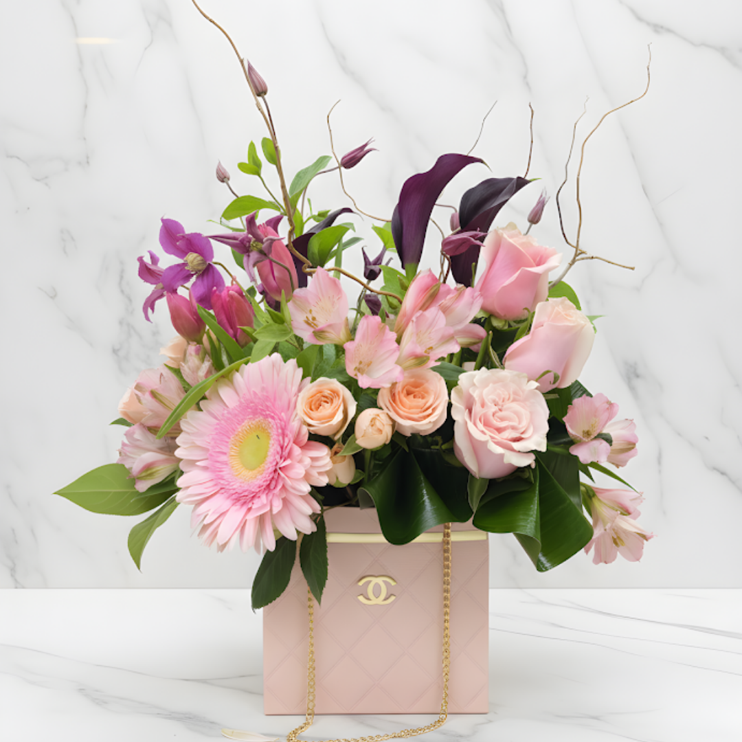 Designed for those with an eye for detail, our Designer’s Choice Custom Handbag Arrangement is a one-of-a-kind gift. Styled in a red or pink handbag-inspired gift bag, every arrangement is uniquely created in your chosen colours, making each piece as special as the person receiving it.