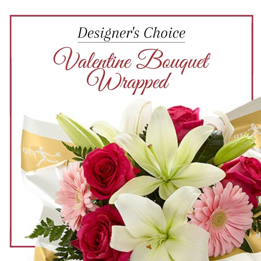 We are the experts in our field. Let Canadiana Flowers create a beautiful hand designed arrangement decoratively wrapped in Valentine colours. Arrangement will differ from photo.