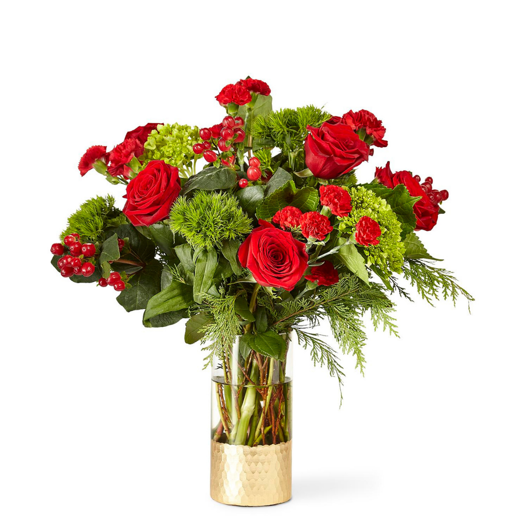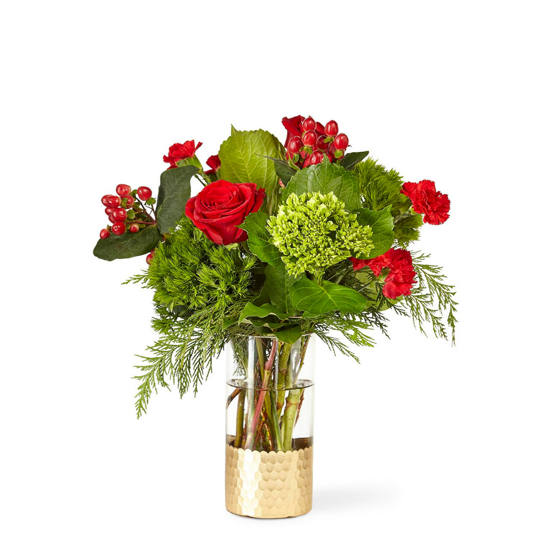 Why wait to unwrap gifts till Christmas morning? Send yourself this breathtaking Home for the Holidays Bouquet and let the artistry of flowers surprise you. The gold-dipped vase matches the tinsel around the tree, creating nostalgia for decked halls in your childhood home.