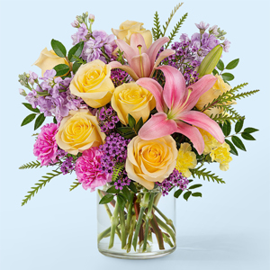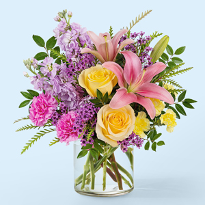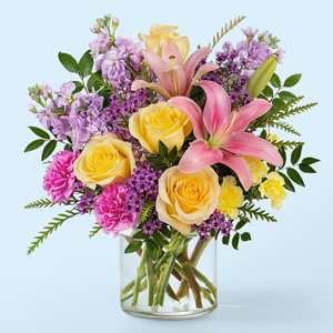 You don't need a reason to celebrate with the Jubilee Bouquet, a lively blend of pink, lavender and yellow flowers.
