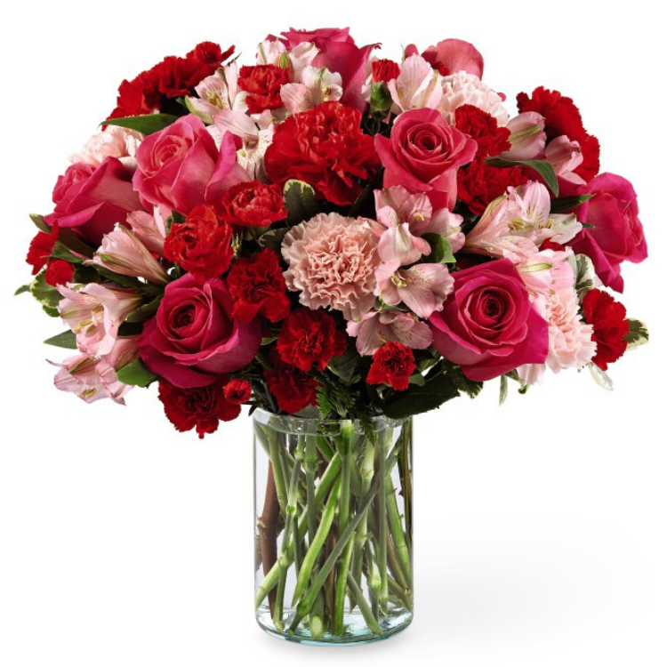 Handcrafted and inspired by the gorgeous hues of the season, the You’re Precious Bouquet is full of sweet sentiment for your favorite person. Hot pink roses, red carnations, pink alstroemeria, and pale pink carnations come together in a clear glass vase to make any room feel beautiful and light. From special birthdays to simply just because, this arrangement is a stunning gift to give your loved ones for every occasion.